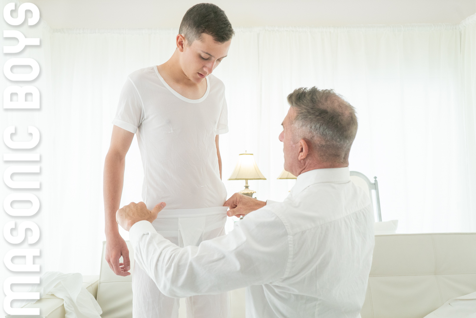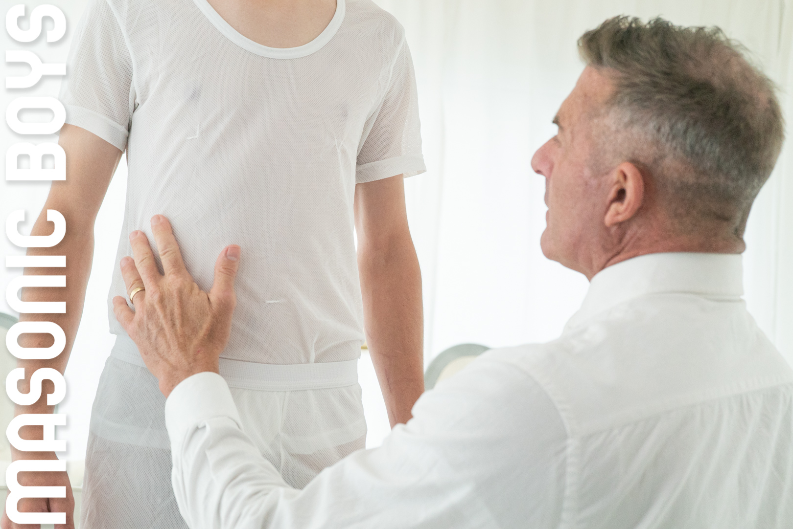 When I was called for my Ordination and walked to find Master Figata dressed in a beautifully-tailored white suit, I knew something special was about to happen. He immediately told me to start undressing, then rubbed my knee seductively as I unbuttoned my shirt. Then he took off his own jacket before kneeling down at my feet and removing my shoes and socks.He slowly pulled my underpants down and my hard dick sprung up to greet him. I was astonished when he placed his lips around it. Bolts of total pleasure started rippling up and down my body…
