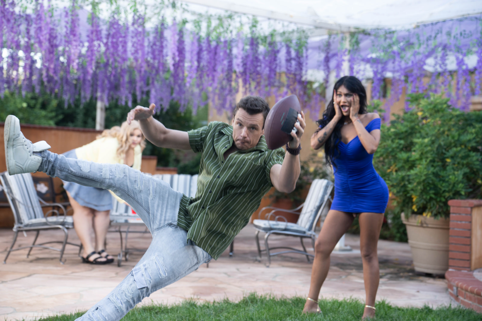 Raven-haired goddess Victoria Grant is handed what looks like a football, but after opening it up, discovers it’s a sex toy! The gorgeous tgirl uses the masturbating device to pleasure herself, with a little help from her handsome friend Johnny Palms. Aroused, the horny pair head to the bedroom to continue their naughty fun, with Victoria deepthroating Johnny’s rock-hard cock in a sensational blowjob before sitting on the muscular stud’s face so that he can get a taste of her shenis. Afterwards, Victoria spreads her legs and takes a missionary-style pounding while jerking herself off, and then the big-boobed trans babe rides Johnny in reverse until it’s time to suck on his dick some more. Still feeling horny, Victoria gets on all fours, inviting her hunky lover to bang her from behind in doggy position, and then the tattooed nymph bounces her sexy ass on Johnny’s lap cowgirl-style before cumming inside his mouth!