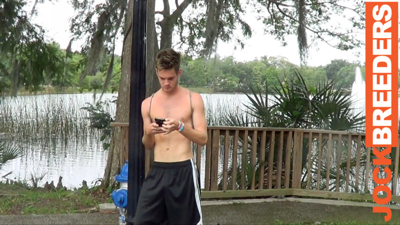 Lanky stud Benji Banks, dressed only in a small pair of athletic shorts, waits for his rideshare to the gym.