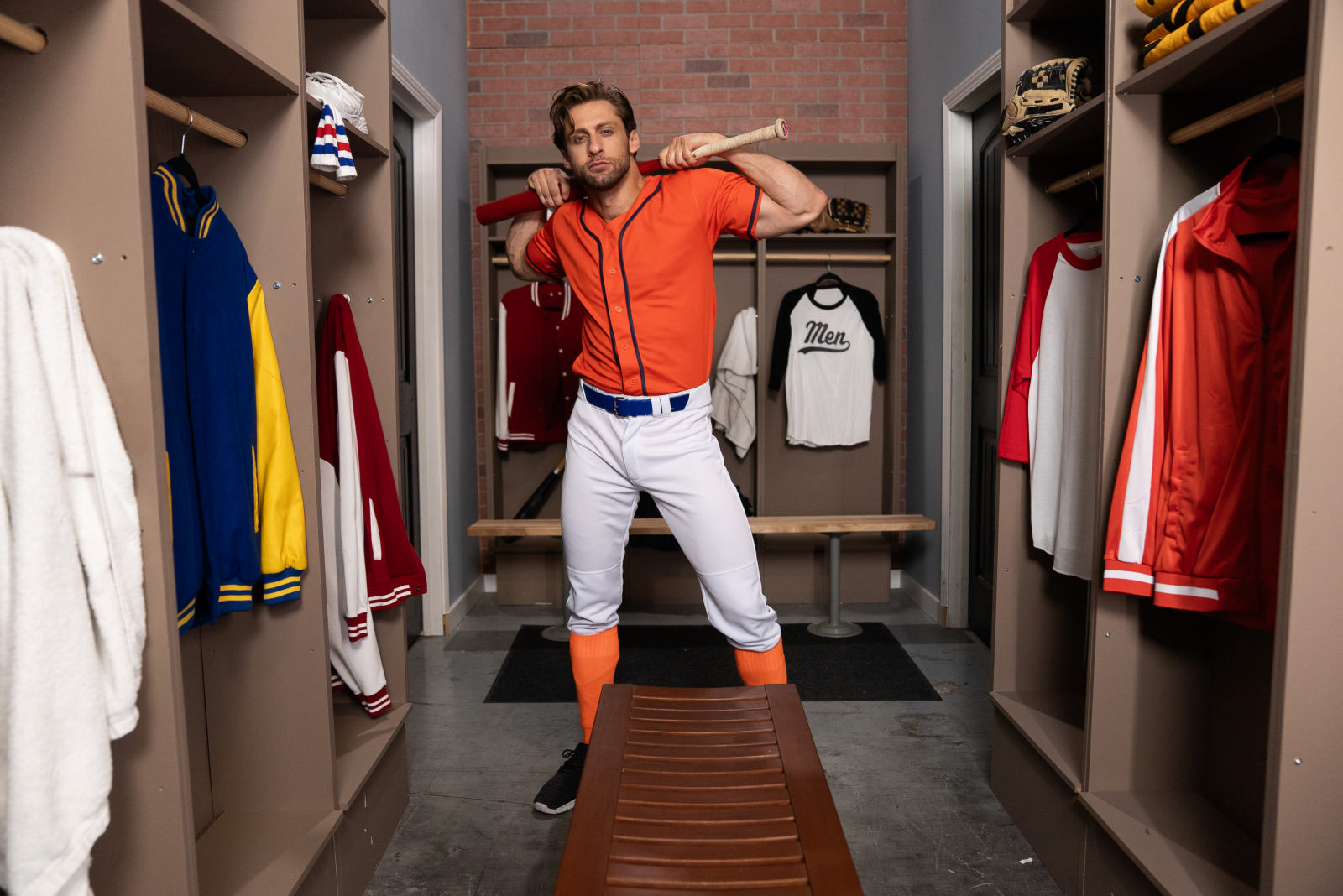 Hunk Dom King is super disappointed after losing the baseball game, but in the locker room his teammate Nick Cranston tries to cheer him up and lighten the mood with a wedgie as he gets changed. When Nick undresses, Dom can’t tear his eyes away from his buddy’s enormous balls! No wonder Nick’s in a great mood with balls that big. Dom takes out his to compare, and fucks that big sack. The guys suck each other, then Dom bends Nick over and spreads his ass, sliding a baseball bat into his hole! Dom fucks the tattooed bottom doggystyle, and Nick rides the top. Dom holds up Nick’s legs as he fucks him on the bench, and Nick drains his enormous balls before Dom pulls out and cums.