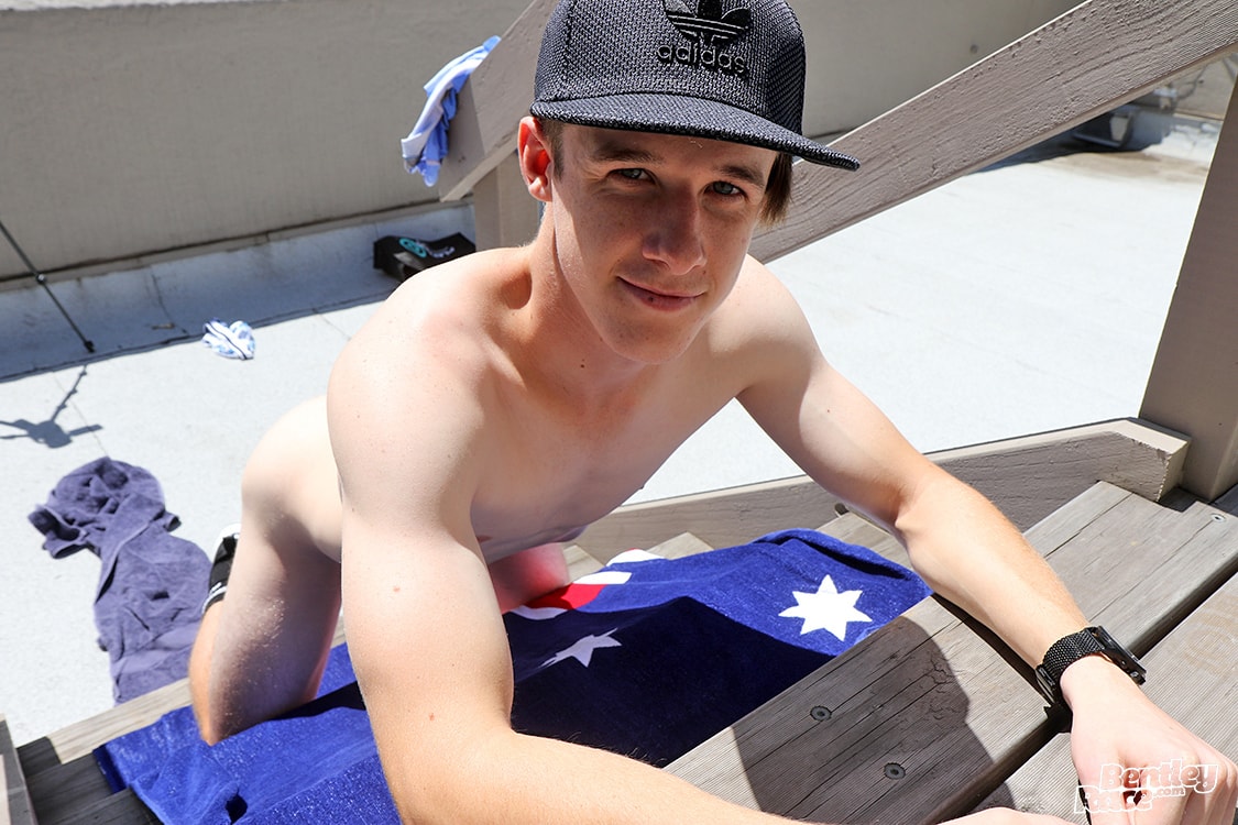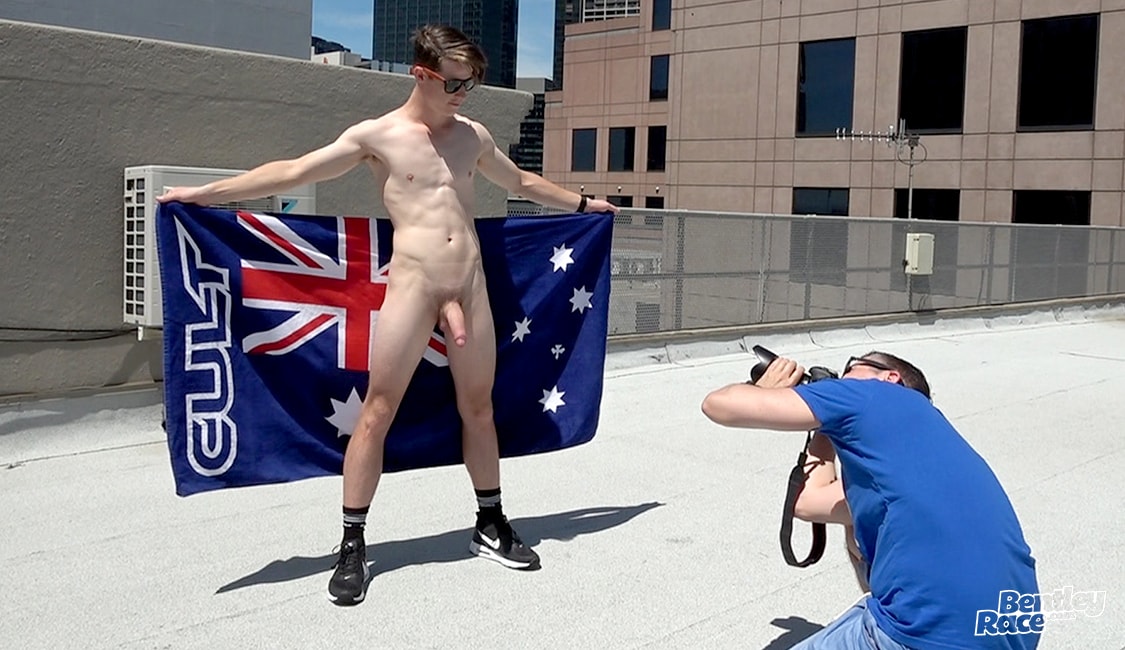 Brad Hunter is showing off his XL Aussie Cock on the roof at Bentley Race