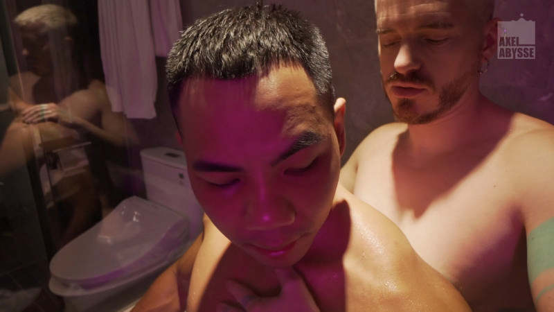 A relaxing time after a long day… Axel Abysse joins Roy Huang in the hot tub for a tender but steamy cuddle… It doesn’t take long before Axel’s fist slides inside that bubble butt…