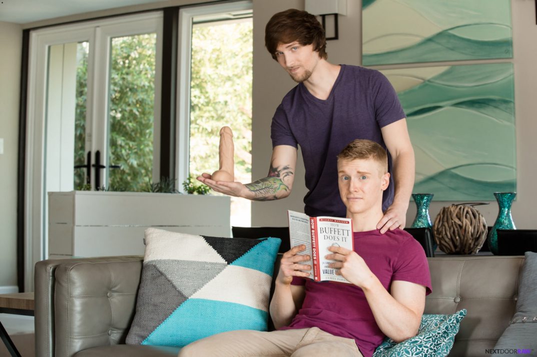 Scotty Zee slowly inches the dildo all the way inside Alex Tanner A, fucking him with it slowly as he starts to jerk him off. Alex Tanner A begins to pre-cum as Scotty starts sucking him off, still fucking him with the dildo. Alex tells him he’d like to give some head, and so he flips around on the bed and takes Scotty Zee‘s cock deep into his mouth as he continues to finger his own hole. ….