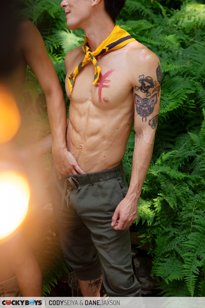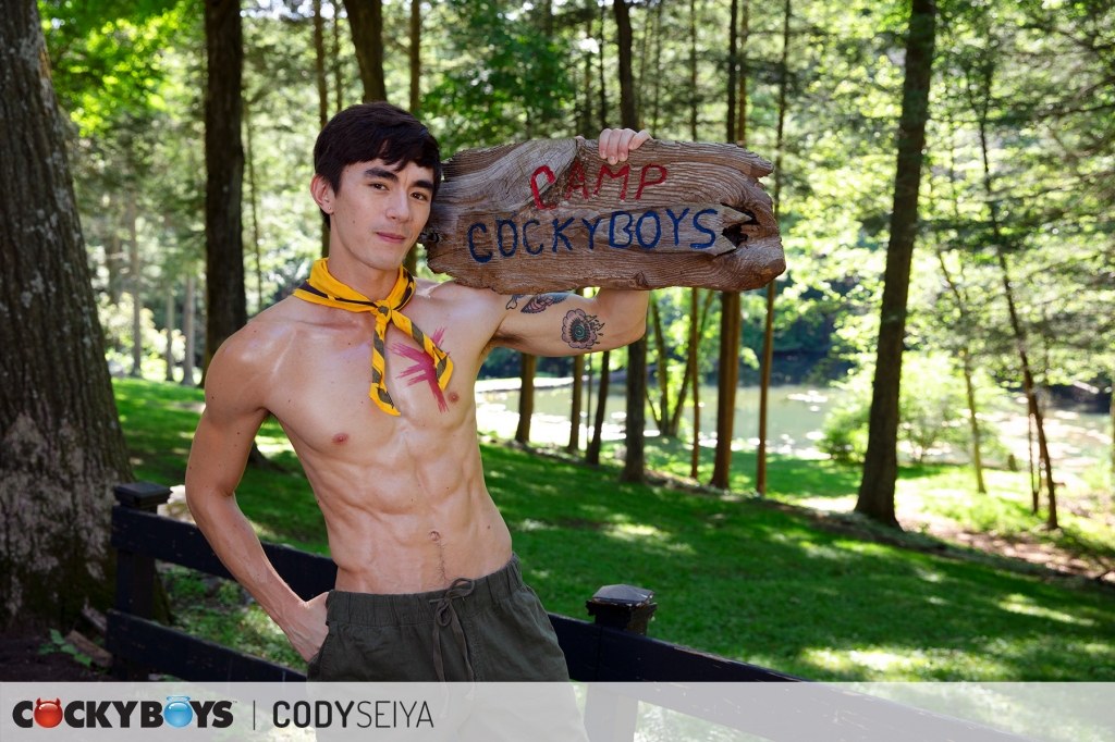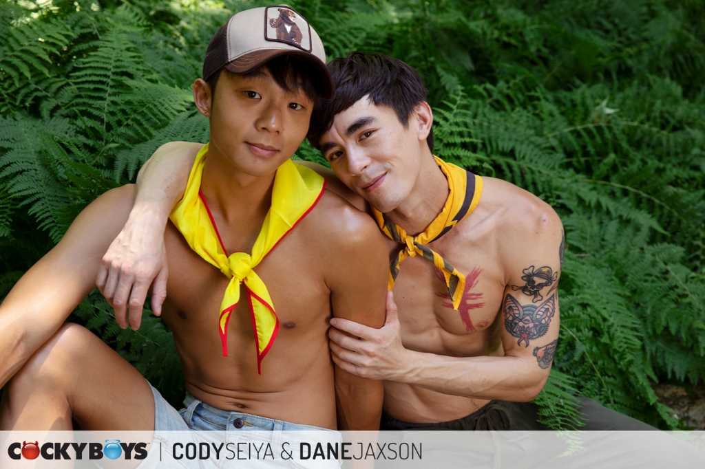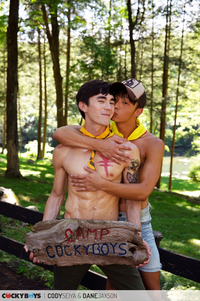 Cody Seiya & Dane Jaxson get to launch this year’s Camp CockyBoys in « Cody and Dane’s Cocky Adventure »! Our fun-loving duo, with a little ingenuity, hang the official « Camp Cockyboys » sign but they’re now horny and go on a hunt for a bed somewhere on the grounds. After a long search, they don’t find a bed, but discover something more exciting; an outdoor sling!