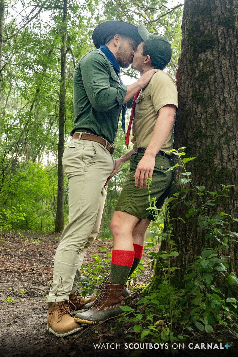 I went out looking for Scout Grant to collect wood for a big scout fire but the wood was still wet. I said “we will have to put off that fire a little longer”. Grant responded, “I don’t mind finding a way to pass the time”. Grant is so handsome in his scouting uniform, his bubble round butt, muscular thighs and calves in those shorts are a smoking hot sight to see.