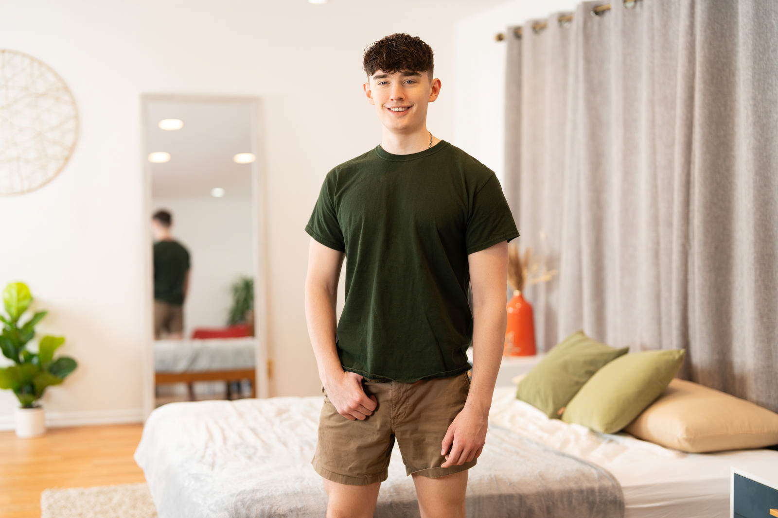 Joey and Cooper undress each other as they kiss on the bed, and Cooper makes quick work of sucking Joey’s cock and hopping on for a ride. Joey fucks the cute bottom on his back, then drills him doggystyle and gives him a creampie! After pushing it out, Cooper flips over to jack off and cum.