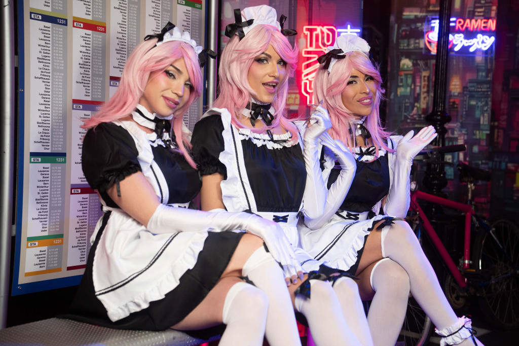 Wearing hot maid outfits, breathtakingly beautiful tgirls Zariah Aura, Avery Lust, and Kasey Kei get down and dirty as they fuck each other in an incredible threesome. Big-boobed cosplay cuties Avery and Kasey descend to their knees to worship Zariah’s hardening shenis, and then the racy trio strip down to their socks and high heels, with Kasey inserting a butt plug deep inside Avery’s tight hole to loosen it up! Later, the busty trans queen penetrates Zariah from behind as the all-natural nymph swallows up Avery’s long, thick she-cock, and then the gorgeous ladies position themselves in standing doggy, fucking each other in a sexy anal train. Still feeling horny, tall, slim tgirl Zariah feeds her throbbing erection to Avery as the total babe bounces her curvy ass on Kasey’s lap in cowgirl, moaning loudly in euphoria as she nears climax. Once they’ve had their fill, Zariah and Kasey stroke themselves to orgasm, treating Avery to a sticky facial, and then it’s Avery’s turn to cum!