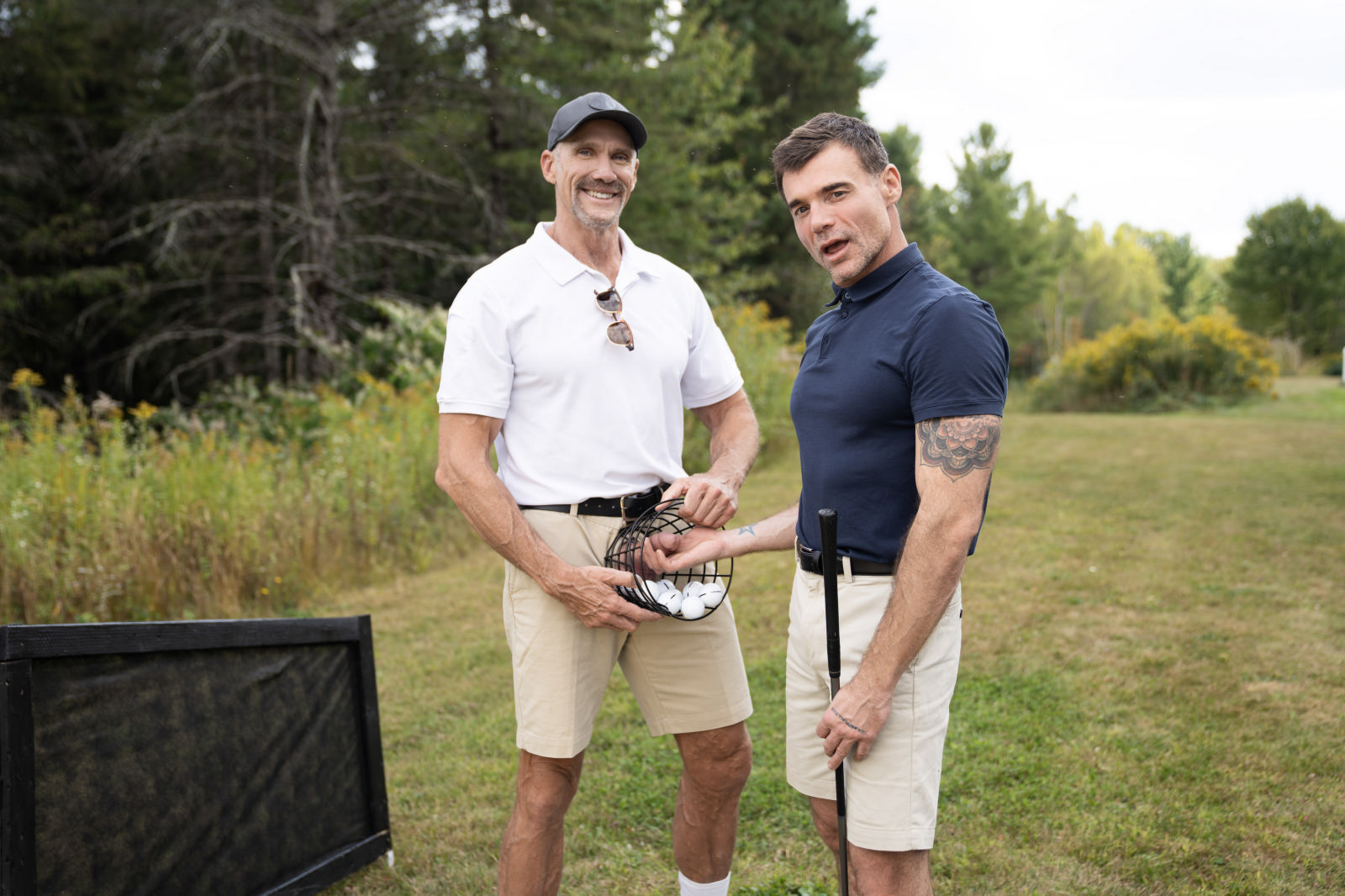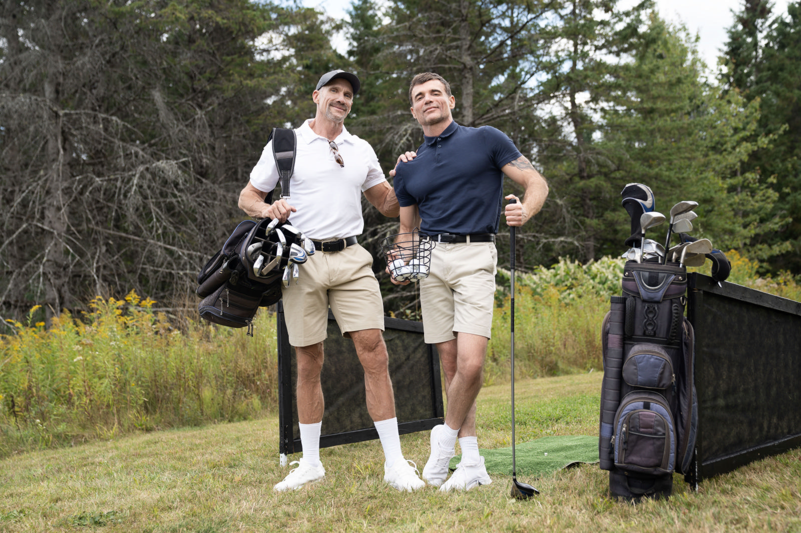 Silver fox Dick Dawson has taken his golf buddy Dallas Steele’s advice and bought a stiff shaft. Dallas tells Dick he’s going to love how much better his ball control will be, and checks out his buddy’s ass as Dick bends over to set his tee. When Dick asks Dallas to pass the ball bucket, the daddy decides to prank him by sticking his wood through the bottom! To his surprise, Dick likes it and starts stroking him, then sucking his cock. The guys hide in the rough and Dallas rims Dick, then gives him his big club! Dick rides Dallas, then takes his dick on all fours before sucking out the top’s load as he jacks himself off.