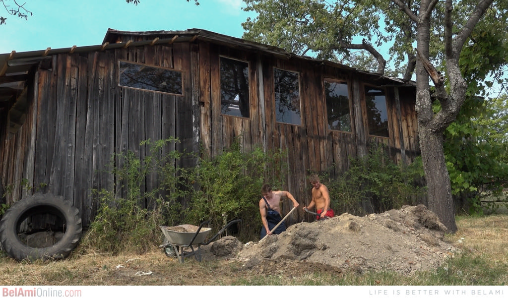 While Callum Dean and Hudson Malone are put to work with their shovels, it seems that Hugo Carter is a little too delicate for this kind of labor and contributes to the work effort by offering to utilize his best talent and offering up his ass to both his sexy comrades.