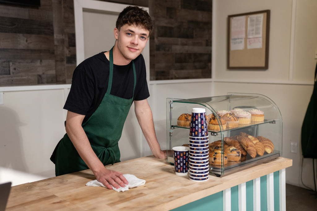 New barista Troye Dean is trying to figure out how the POS works when he spots hottie Angel Rivera sitting in the drive through with his dick in his hand. Angel just wants a large black coffee, but Troye tells him with a wink to cum inside, because it might take a while! The cafe employee is thirsty for Angel’s cock, and the top bends Troye over the counter to tongue his hole, then pound him doggystyle. Troye rides Angel until a honk summons him to the drive-through window, and he spills a coffee on a customer as Angel fucks him from behind! Troye shoots his load as he rides Angel on the counter, then takes the top’s cream on his face.