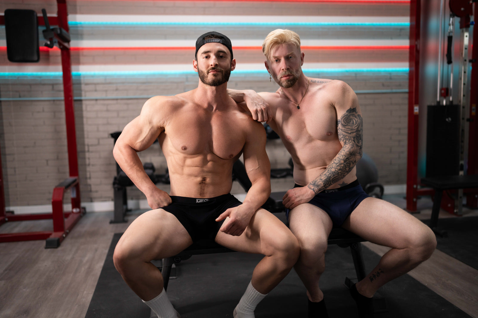 Muscular, blond Andrew Rage is making a workout video in the gym, but dark-haired David Rage asks him not to record him when he gets him in the frame while he’s lifting. Andrew puts the camera away and takes out his ass instead, bending over to offer the hunky top an eyeful… and an invitation. David is happy to give the bottom the dick he wants, pounding him doggystyle and on his back, then fucking his face. David rims the bottom, and Andrew gets his reps in riding that dick, then David drills him from behind before cumming on his face!