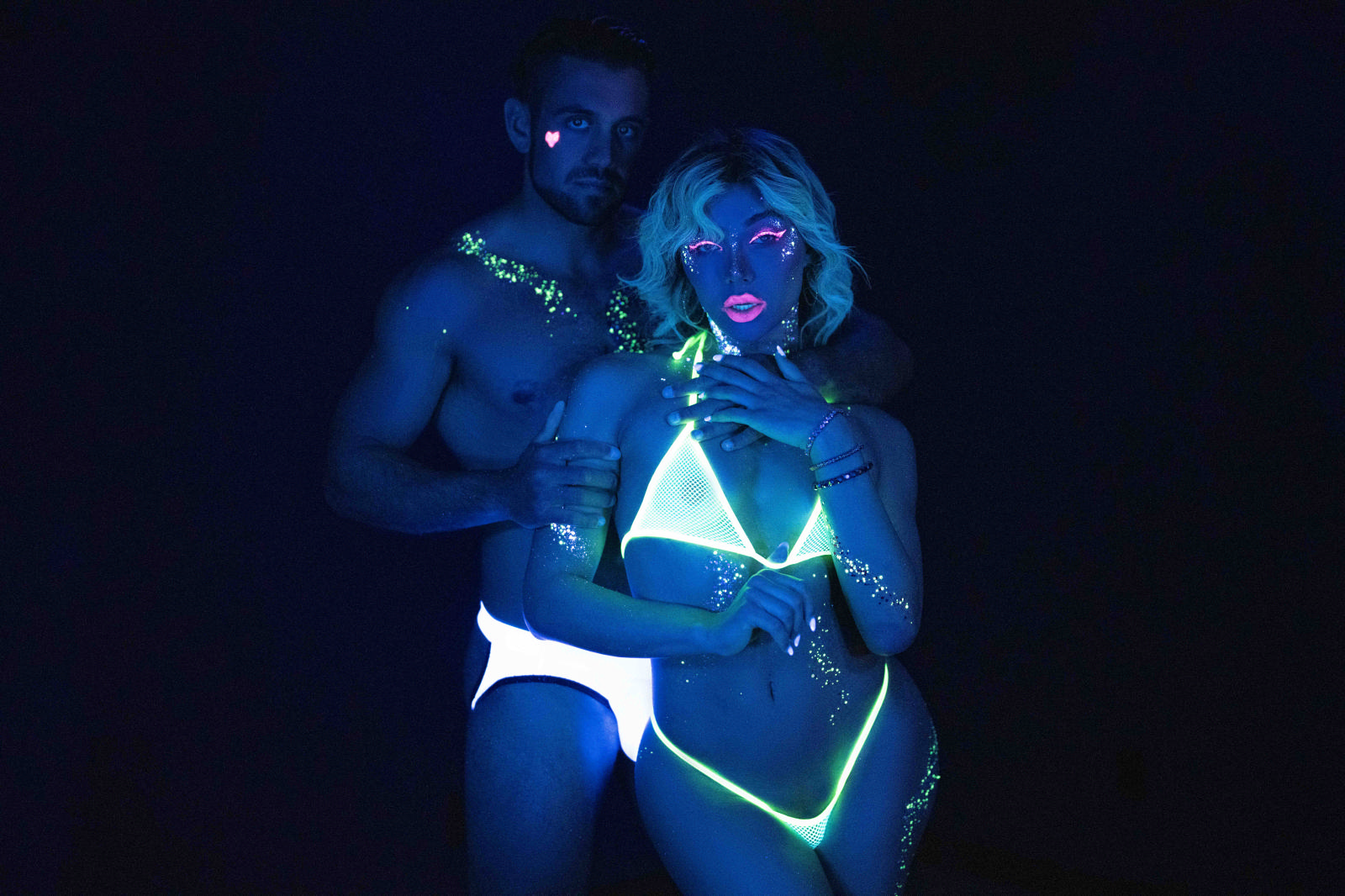 Blonde-haired seductress Emma Rose is the star performer in this mesmerizing show, where she tantalizingly displays her enviable curves in sexy neon stockings. Covered in glowing paint, the extraordinary tgirl puts on a glittering spectacle which entices the devilishly handsome Dante Colle, who is captivated by Emma’s beauty and wants to pay homage to this stunning trans queen. Beguiled by Emma’s vibrant, mystical aura, dark-haired Dante slips a finger into her gorgeous, round booty, then gently probes the all-natural babe’s juicy hole with his tongue. Turned on, Emma invites the muscular hunk to stretch her in doggystyle, moaning with euphoric delight as she pushes her perfect ass against the full length of Dante’s thick shaft. The amorous pair then engage in a soft and tender 69, with Emma sucking and slurping on Dante’s throbbing erection. It’s time for the sensual siren to swoop down and land her beautiful tgirl dick in Dante’s eager hole, giving him the anal fucking he’s been lusting after. Next, it’s the ravishing trans queen’s turn to be pummeled by Dante, who slams her tight butt over and over in missionary. Once Emma has taken every inch of Dante’s huge cock, the pretty sex nymph opens her mouth wide and patiently waits for a taste of her lover’s big, creamy load.