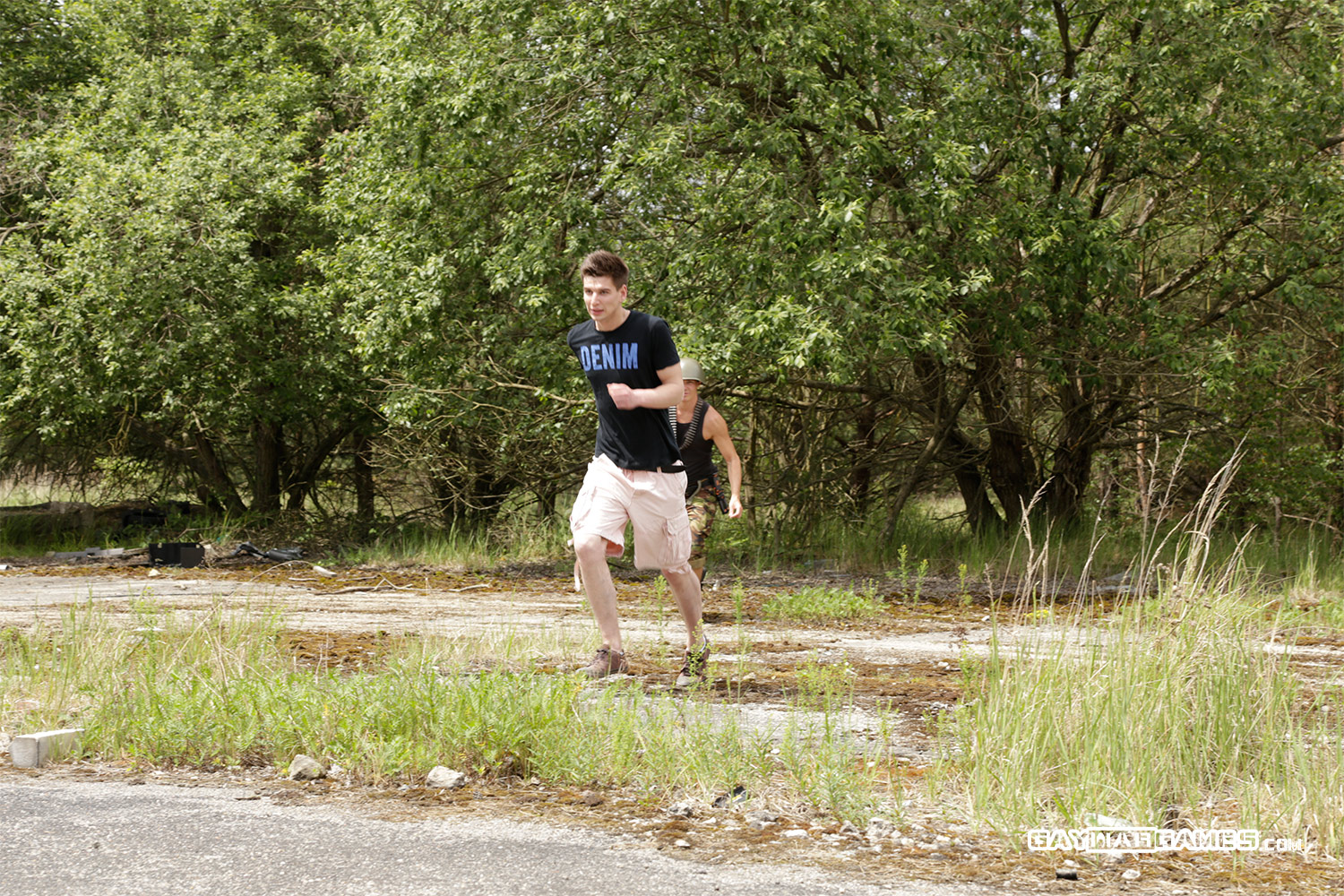 Une jeune gars qui essaye de s’enfuir se fait rattraper et maltraiter par un militaire sadique. il va subir humiliation et coups. Se faire goder le cul par un militaire en tenue et en extérieur dans la campagne