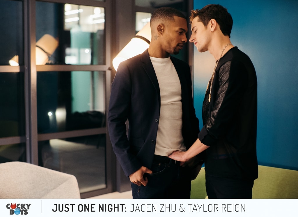 Passion takes an unexpected turn when Jacen puts Taylor on all fours yanks down his pants, and buries his face in his musky crack. Remaining mostly dressed, he rims Taylor deeply and takes a verbally and physically dominant role. He slaps his hard cock on Taylor’s hole until he begs to be fucked and then with one thrust enters him and fucks him hard and deep. Jacen removes his clothes and making sure he’s not too rough on Jacen, proceeds to plow forward. Still, Taylor needs a small break, backtracking to romantic kissing and cocksucking foreplay.