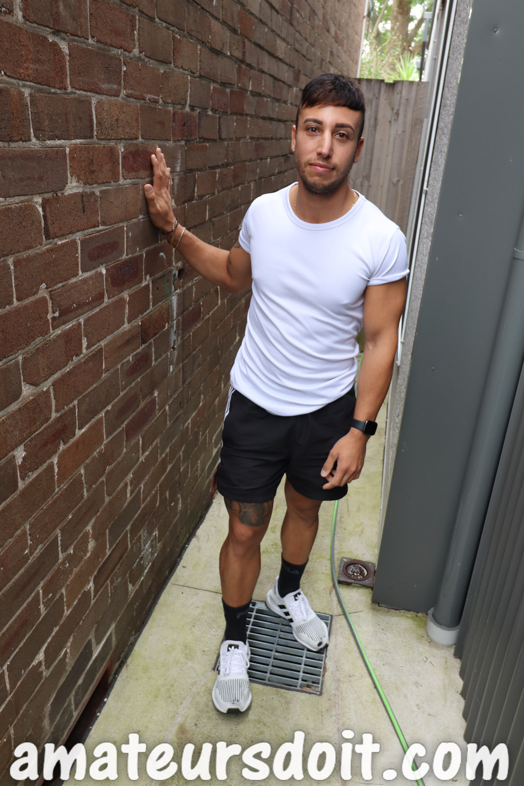 Kandy strokes his dick and his body at the same time, dropping his briefs to give us a look at his hard ass cheeks and then heads inside to climb up on the kitchen counter to jerk his cock with his hole on show. His breathing gets fast and Kandy drops down to the floor just before his unloads a huge, messy cumshot all over the floor.