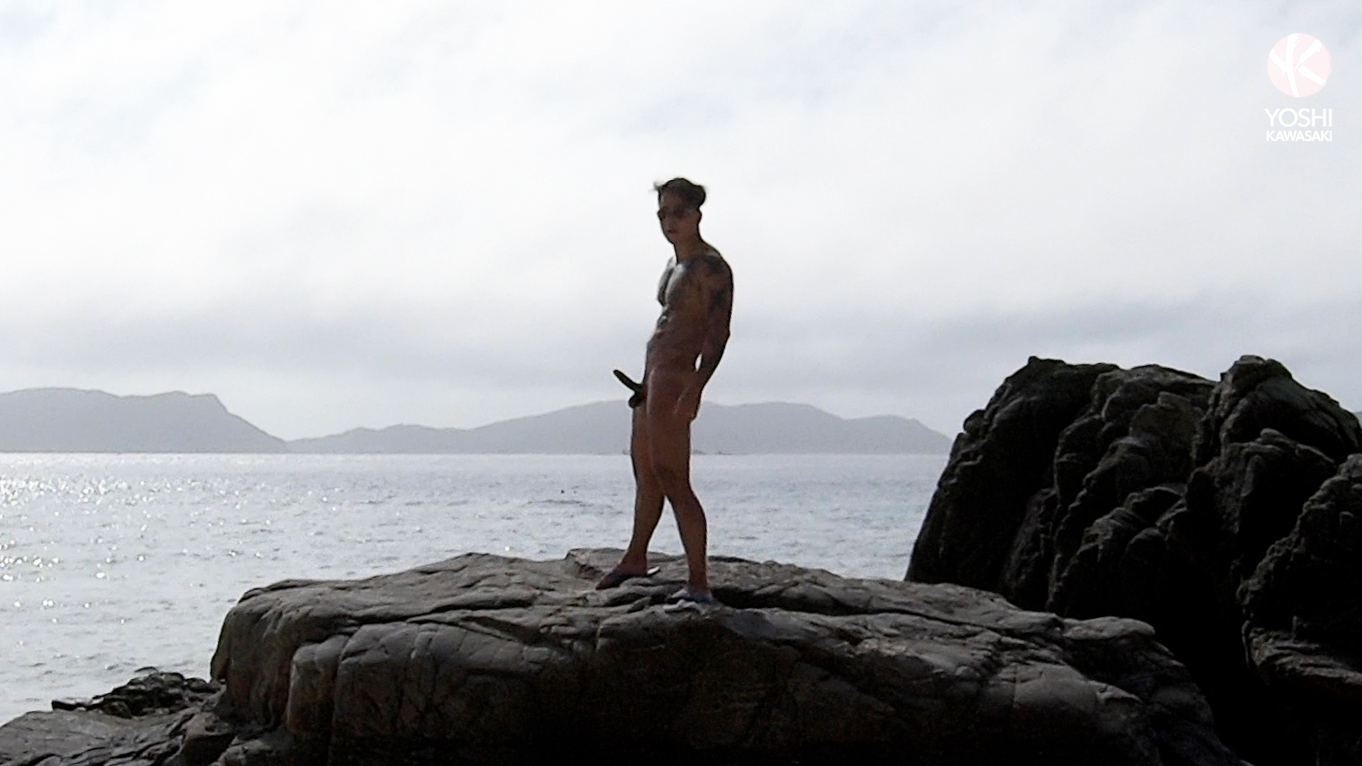 What’s an exhibitionist to do without a gaggle of voyeurs to watch the steamy action? Yoshi stakes out a « secluded spot » on a pristine beach to strip down and gratify all his urges in the warm sun. Pulling down his hot pink swimsuit, he grabs his cock and gives it a few hefty strokes for the camera. Posing on a huge beachside boulder, he spreads his legs wide open and gets to work pleasuring himself. Trudging through the sunbaked sand, he bends over and pushes out his rosebud. As Yoshi gets closer to blasting his load, it turns out this deserted beach is not so empty, and he notices a few sun-worshippers there intently watching his hot juicy antics. Getting bolder, he moves closer and shows off his big hard cock. Nuts heavy with cum, and the additional stimulation of a voyeur or two to watch him, send our hot hero over the edge. He jerks a load into his hand and licks up the sticky cream.