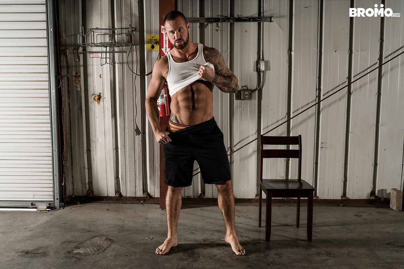 Michael Roman and Guy Houston take on each other’s muscled bodies and thick cocks in this intense bareback scene. The guys waste no time and get right down to business with Michael deep-throating Guy then sitting on Guy’s throbbing cock and riding it like a champ. The two intensely fuck until Guy blows his load all over Michael’s ass.