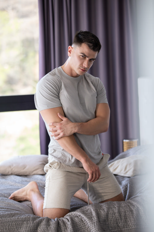 When Dean Young’s boyfriend, Mr. Deep Voice, gets home from work, Dean is still sprawled out on the bed with Joey Mills! They have just enough warning for Joey to hide before Mr. Deep comes into the bedroom, horny for his BF. Joey makes it out as Dean sucks the top, but sneaks back to watch. The American twink gets spotted as Dean rims his man… and Mr. Deep Voice is intrigued! The deep-voiced Brit fingers and licks his boyfriend’s hole, then fucks the Irish twink doggystyle before putting him on his back. Dean rides his boyfriend till he cums, then pumps the top’s cock till he shoots his load and licks off his sensitive cock.