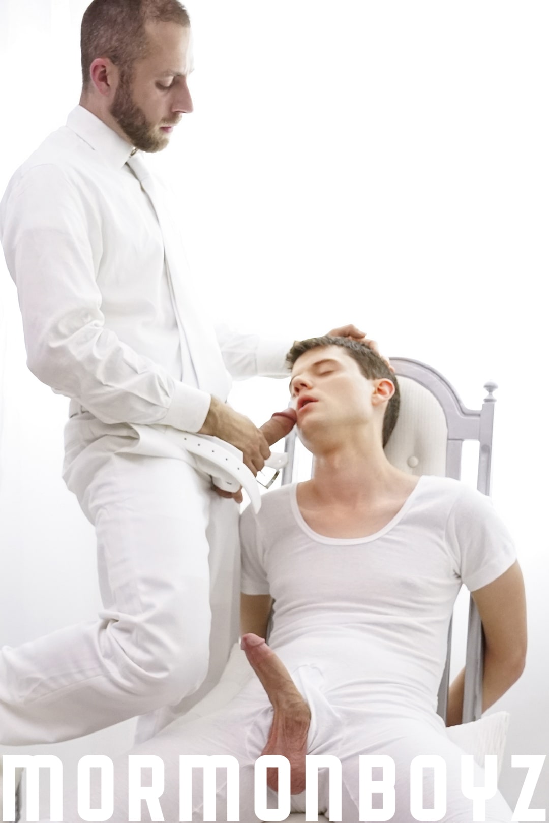 on MormonBoyz, a new missionary, Elder Jones, is brought into the temple to be thoroughly questioned and tested by the priesthood. President Lewis presses the virgin boy about his sexual past before stroking his big cock and making him cum right in front of him!