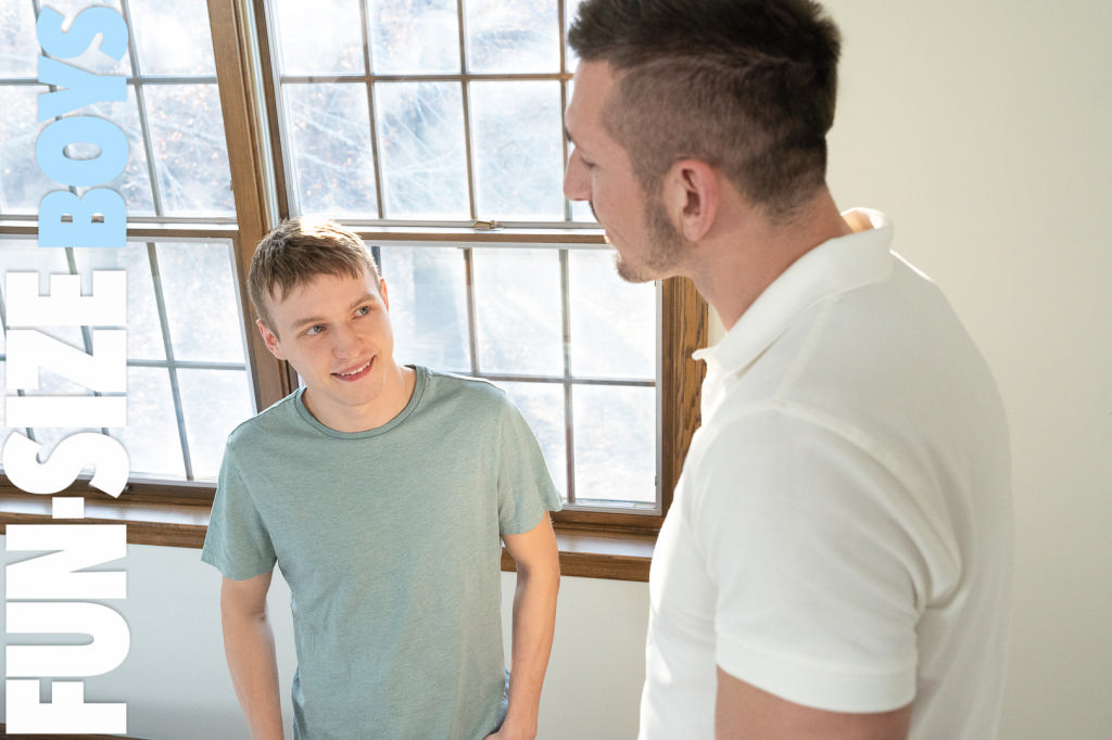 Little Noah still needs an apartment. Even though the apartment Mr. Stryker showed him was small, he hasn’t been able to stop thinking about the extra large landlord fucking him in the basement utility room. This week he’s back for another look at the apartment and hoping for another ride on Mr. Stryker’s dick. The pint sized bottoms’ hopes, and ass, get fulfilled.