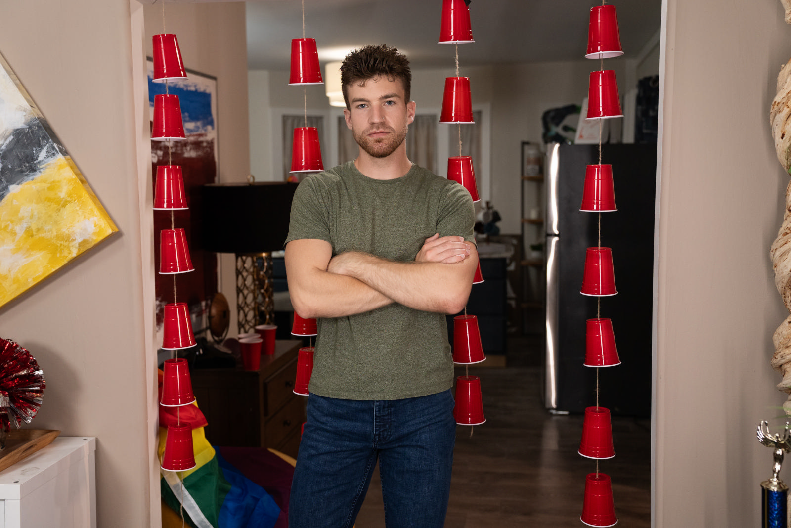 Jayden Marcos’s girlfriend isn’t a huge fan of how his roommates are always cockblocking them during their dates in the frat house. A wrong move leads to the right one as frat bro Carter Collins reaches for the popcorn and puts his hand right on Jayden’s bulge! Jayden’s not mad; he takes out his cock and Carter sucks it while the GF is in the other room. The top sneakily fucks Carter from behind in the kitchen, not even stopping when his girl catches them and storms out. He pounds the bottom on the floor, and Carter rides Jayden on the couch, then cums as the top drills him on his back. Jayden pulls out and blows his load!