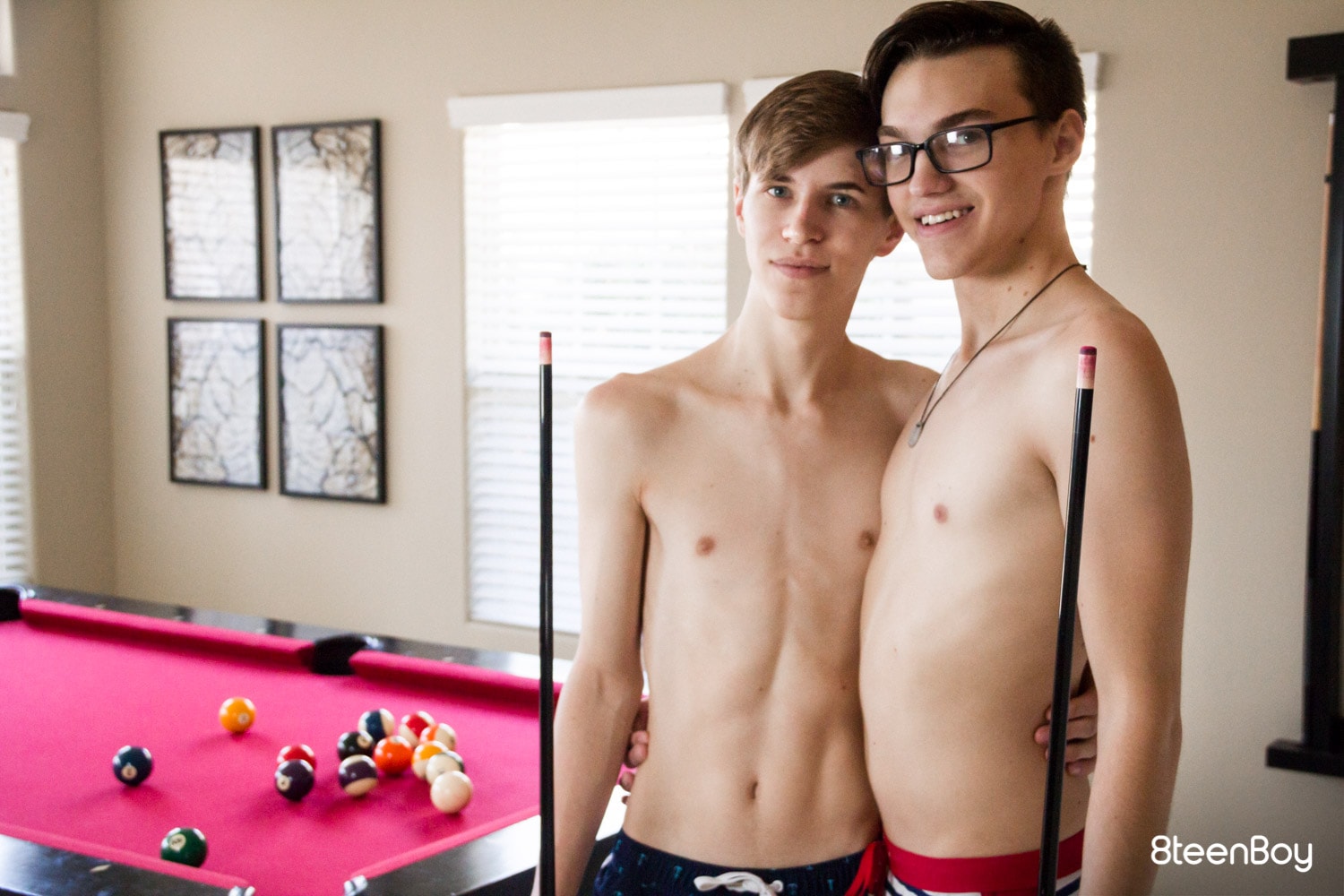 Gabe Isaac & Dustin Cook : Fresh from a swim in towels and trunks, Dustin Cook and Gabe Isaac head inside for a feisty game of pool. Gabe breaks and the guys start a game, but between the phallic pool sicks in their hands and the banging of balls they both begin to hunger for the real McCoy; besides, Gabe’s stick out weighs any pool que in the room. Dustin does some lip smacking, yummy damage on Isaac’s enormous appendage then lifts the kid’s legs up, spreads Gabe’s cheeks like butter and tongue bangs the boy’s bung hole. After that tasty tease, Isaac’s ass is begging for something more so Cook delivers, driving his dick deep inside and not letting up till his balls hit the boy’s bottom. The guys flip the scrip and Cook climbs onto the pool table to squat down on Gabe’s super huge schlong. Dustin’s hot hole handles the monster like a kid in a bounce house at a birthday party as Isaac strokes Cook’s cock as it flops around flirting inches from his face.