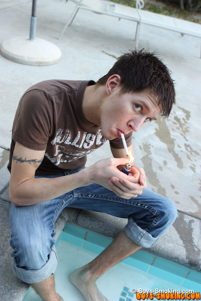 Horse hung young southern smoker Ryan Connors saddles up poolside for a hot solo smoke and stroke!