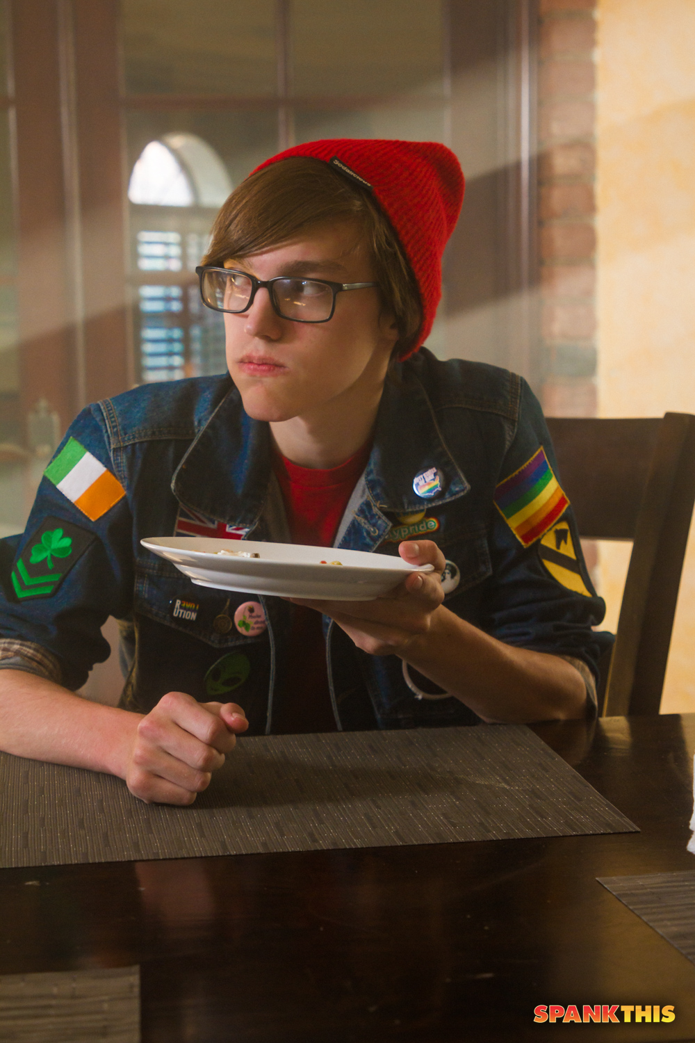Blond adonis Max Carter has a horny hunger and has taken his time putting together the perfect lunch of tasty taquitos when the doorbell rings. It seems to be a pranker pulling a ring and run; so, he goes back inside only to find neighborhood naughty boy Dustin Cook chowing down on HIS mighty meal! To say Max is mad would be an understatement! Carter puts that anger to ass and takes his hunger pangs out on Cook’s caboose. Master Max has taken a liking to the firm fanny and helps young Dustin out of his pants for a more severe swatting. He gives the kid’s seat a wank worthy wedgie so he can get a look at those smooth, cherry cheeks before making the beautiful boy get fully naked. Dustin begs for mercy but Max is only handing out spankings today and the more he begs the harder Carter cracks his can. Max makes pretty boy call him sir while he counts off the last few spankings before ordering Dustin to cook him up some more taquitos. After all, he definitely worked up an appetite on that beet red ass! Lesson learned.