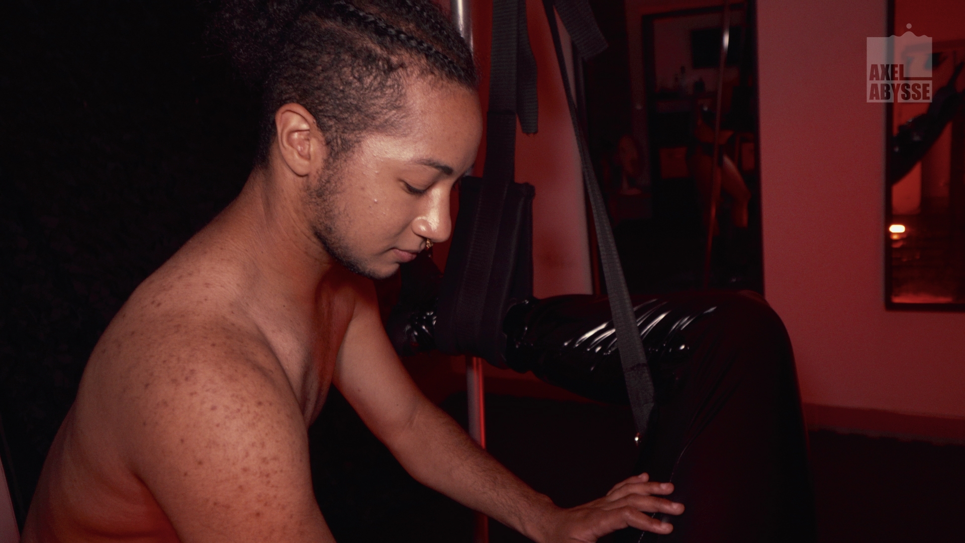 This gimp has the biggest hole in Paris. He spreads his legs in the sling for his master Glitx, ready to take an elbow-deep dive.