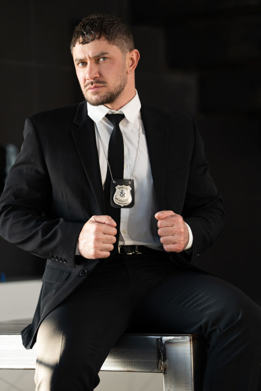 Beleaguered CEO Jay Roberts’s day goes from bad to worse as detectives Dato Foland and Andy Toro arrive at his office and arrest him! The cops zip-tie the CEO to a chair, but Jay’s offer to take both their loads induces them to set him free so he can suck them. The guys tease and finger his hole, spit-roasting him on the conference room table, then form a train. Jay rides Dato as Andy sucks him, then jacks off as he takes two thick loads. But just as he thinks he’s cum out on top, he learns nothing is as it seems.
