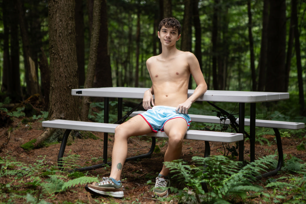 Cryptid vlogger Sam Ledger is on the trail of the biggest legend yet: the Wood Lurker, an enormous man with an enormous D who lurks in the woods. Sam documents his journey as he pitches his tent, not noticing Chuck Conrad watching him through the trees and creeping closer. Sam hides in his tent when he hears a noise, and Chuck bides his time, picking his moment to shake the tent with a mighty roar, then carry Sam through the woods! Sam learns the stories were true when Chuck offers him his huge cock to suck, then bends him over the picnic table to pound his tight hole. The twink rides the Wood Lurker, and the giant top picks him up for a stand-and-carry! Sam cums as he gets drilled in missionary on the table before taking a facial from the man, the myth, the legend…