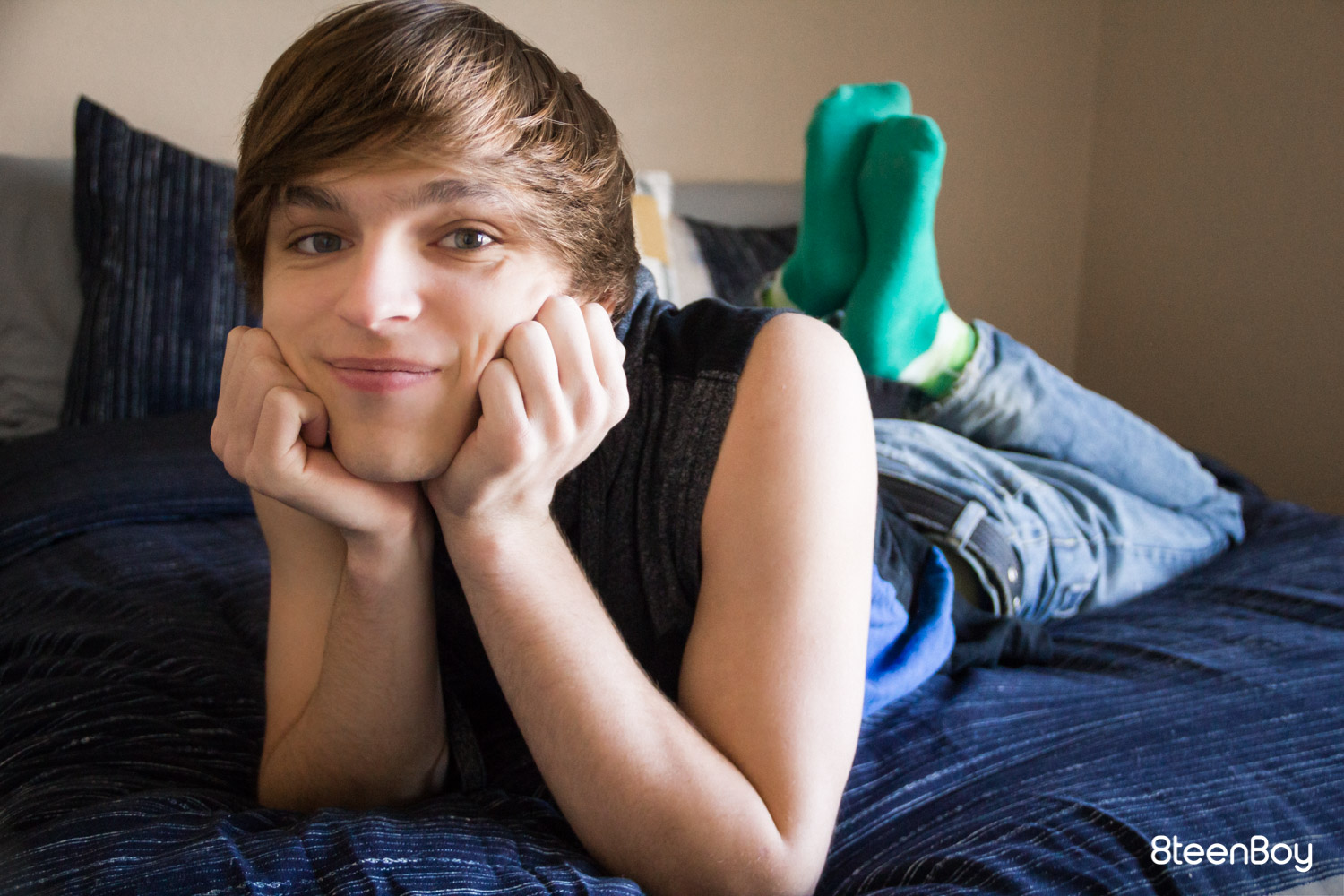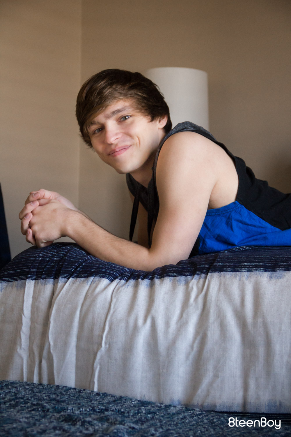 Pennsylvania porn prodigy Tristan Adler is holed up in a hotel room in Vegas with nothing except his whip quick whit and horny thoughts. Lucky for him Max Carter is there to film the young cutie while he’s feelin’ frisky! His dream sceen mate is Joey Mills as he considers himself more of a top and if you touch his nipples (which he calls his fuck buttons) your definitely in for a good time. Max greases the gears by asking all the right questions then suggests Tristan give a little striptease. Being in Vegas and all it’s more than appropriate; plus, Adler’s got a great big boner that needs release. Adorably, he asks Carter if he should take his blue undies off and naturally Max says yes, then lends him some lube and a helping hand! The tight boddied twink leans back and enjoys the body contact when Max massages his torso but our director has other plans. He orders Adler to show us his butt which is a smooth and tender, taught pleasure center for the lad. Carter cracks the kid on the can with some spankings while Tristan moans for more and handles his hammer. Carter steps back to capture the beautiful boy’s sinewy body flex as the sun dances on his flawless complexion while he fucks his horned up hand. Max orders our boy to lay back down. He props his hot body up on an elbow looking stunning as his six pack tightens with every pump of his fist. The masturbation maestro speeds up then slows down to last longer and give us a glorious show.