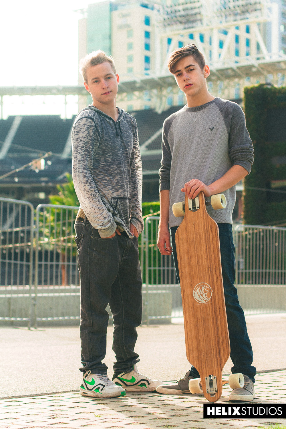 Theres not many things hotter than a skater boy, except TWO skater boys! When putting the exceptionally twinkie Noah White and Joey Mills together, add in a skate board for good measure so the boys can work up an energetic sweat and shit is BOUND to go down! And sure enough, Joey Mills goes down first and fast. He feasts on Noah’s cock like any growing boy should. Speaking of growing, Joey’s junk is getting bigger by the second. The kid DEFINITELY has one of THE most gigantic cocks in the twink stratosphere. This definitely isn’t a problem for cock aficionado Noah. It’s pure porn ecstasy as Joey grabs the boy by the back of the head and rams his hugeness balls deep down his throat! Mill’s hole is crying for attention so White happily wiggles his tongue deep inside before dipping his wick in too! The apple pie all american heartthrob bangs that beautiful backside as Mill’s jacks his giant hammer. One good turn deserves another so Noah climbs on top and squats down swiftly, taking all Joey has to offer as the two make out like high schooler’s on Lover’s Lane. Joey lifts Noah up with ease to get at that ass. Apparently his tongue was a bit jealous of his cock so he gives it a crack at that ass and then REALLY goes to work, blasting away as his big balls slap the naughty boy’s cheeks. This is just too much for Noah’s nuts to take and he lets loose all over the sheets, then turns around just in time to get a face FULL of Joey’s joy juice, sucking out every last drop! We hope tomorrow is laundry day you dirty boys!