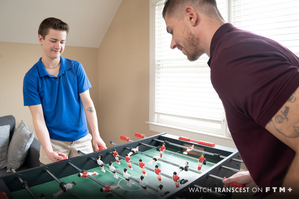 Months ago Uncle Derek and I arranged his game room including his new foosball table. After that, I practiced the game. Getting a little cocky, I made a bet one day that whoever loses the game had to strip off their clothes, like they do in strip poker. He said alright. He won, smiling while waiting. I stripped. He took my nude body into his arms. We kissed and soon I got my reward, sucking his big cock. It is my favorite toy! While I was sucking him, his hand moved down, fingering me.