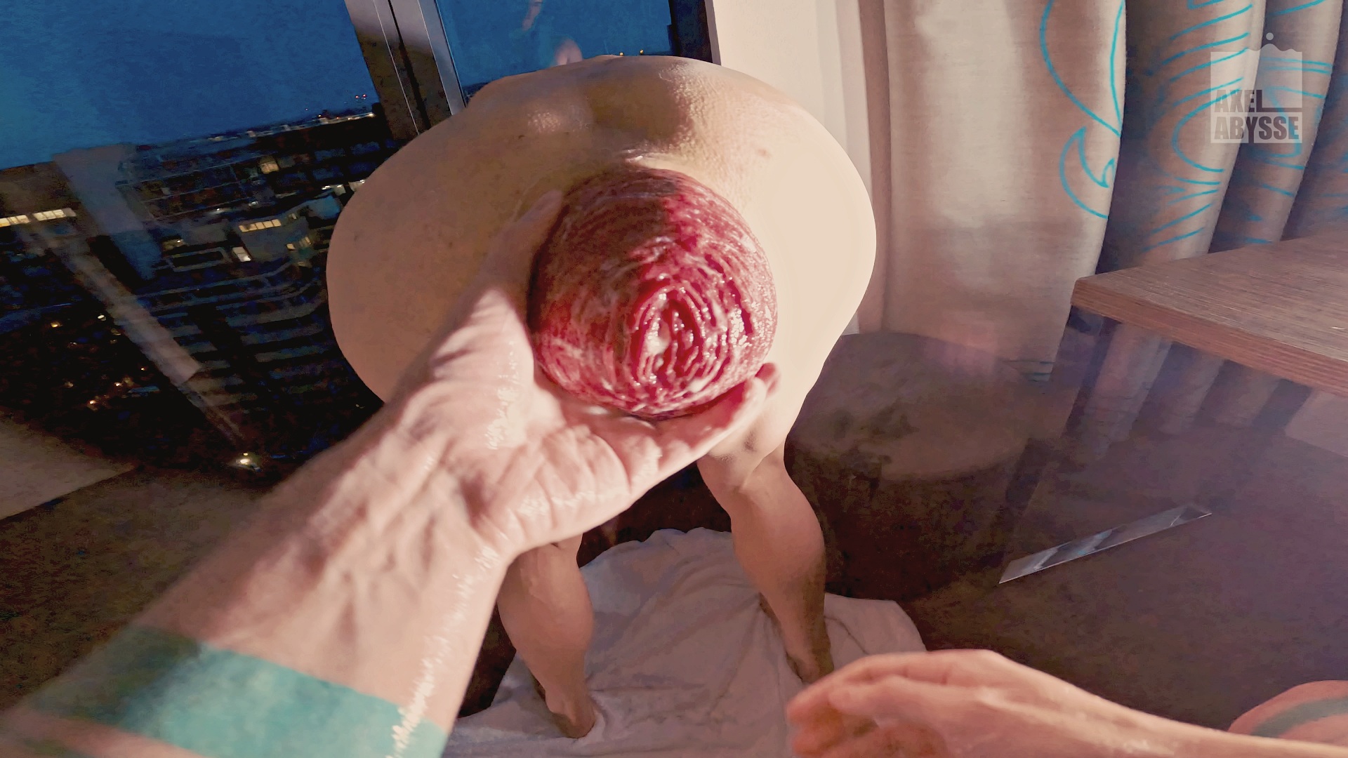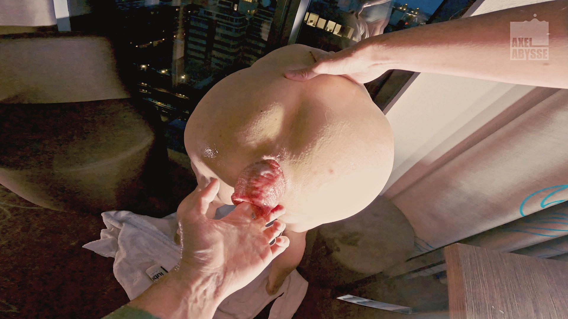 Exposing their filth to the city below them, Axel Abysse digs inside Angel Diaz and pulls his guts out. In Axel’s hands, the magnificent prolapse gets bigger and bigger.