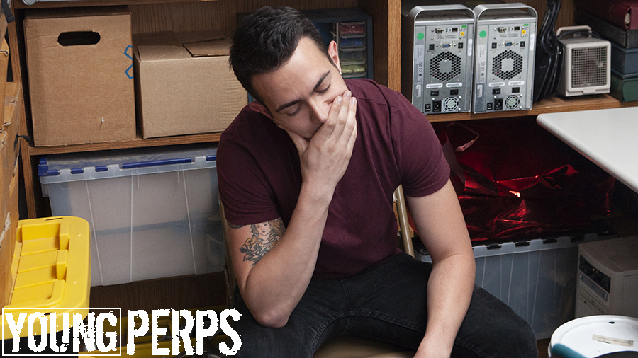 This week’s YoungPerps brings you a tattoed straight guy who was banned from the mall and caught trespassing. Once the perp is escorted to the back room, he denies any previous charges against him and claims he just moved to town. The officer does some digging, only to find out that the boy is violating his probation. This hot perp gets a huge boner when the guard strips him down and performs a handsy, illegal inspection. The punk is instructed to place his hands on the table and take it from behind, and the horny security guard pounds the boy’s ass until he milks his dick. He’s forced to make the officer cum to ultimately set himself free, and the guard dumps a creamy load all over his chest.